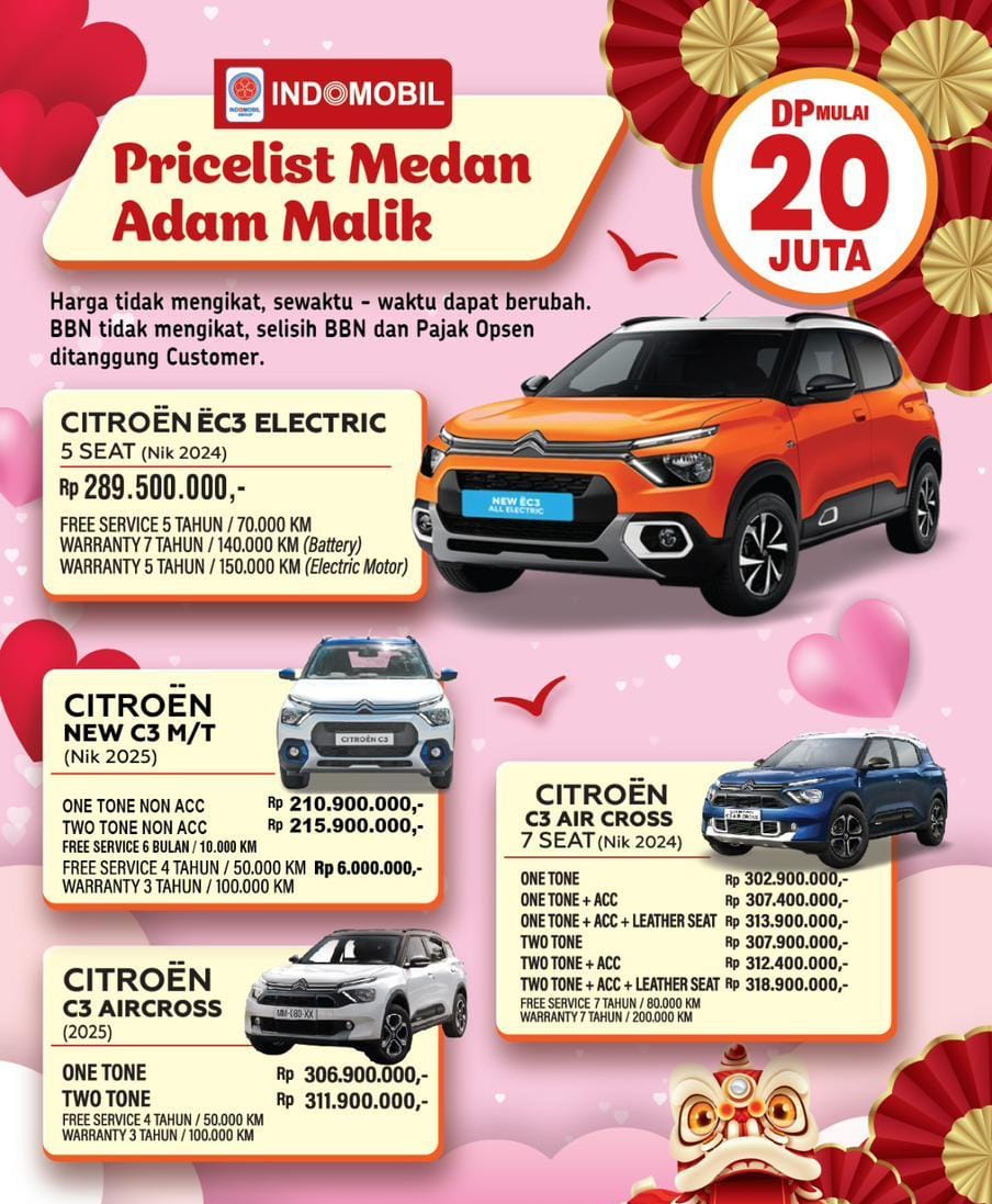 Dapatkan Harga dan Promo Terbaik di Citroen Medan. Pelayanan Kami mencakup seluruh wilayah Medan dan Indonesia.